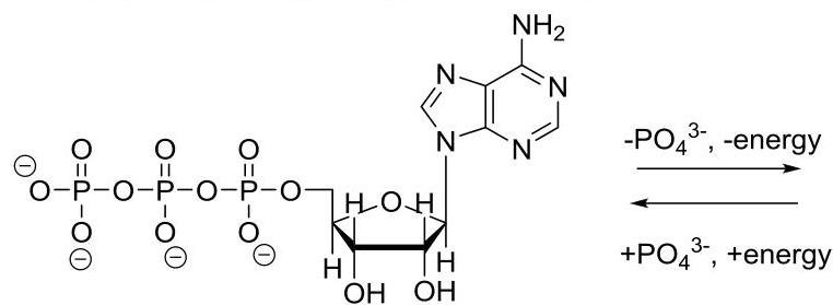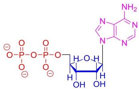 ATP and ADP are molecules used by cell to accumulate and produce energy. Both molecules are consist of three parts: heterocyclic ring (nucleobase), a five-carbon sugar and phosphates as well.