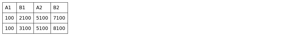 A circular plasmid of 10,000 base pairs (bp) is digested with two restriction enzymes, A and B, to produce a 3000 bp and a 2000 bp bands when visualised on an agarose gel. When digested with one enzyme at a time, only one band is visible at 5000 bp. If the first site for enzyme A(A1) is present at the 100th base, the order in which the remaining sites(A2,B1 and B2) are present is?