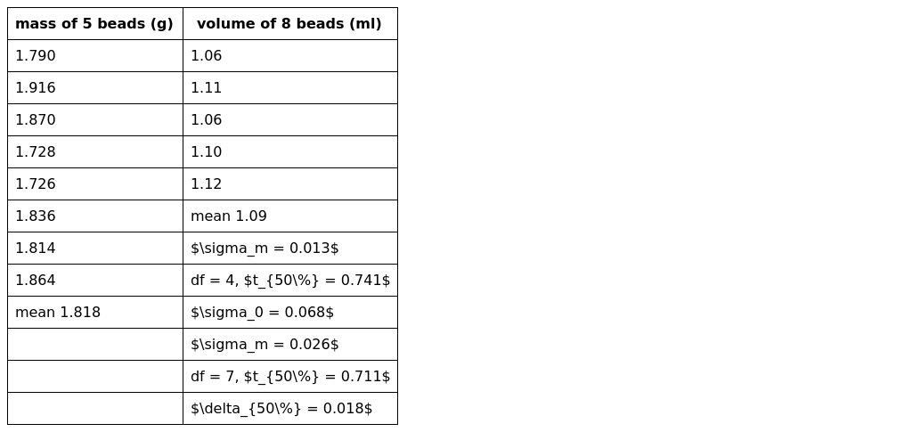 Mean for 5 beads = g
