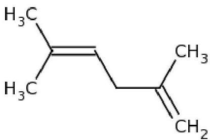 The figure shows the skeletal structure in line-angle (line-bond) mode of 2,5-dimethylhexa-1,4-diene. Identify the number of hydrogen atoms bound to each carbon atom in the structure.