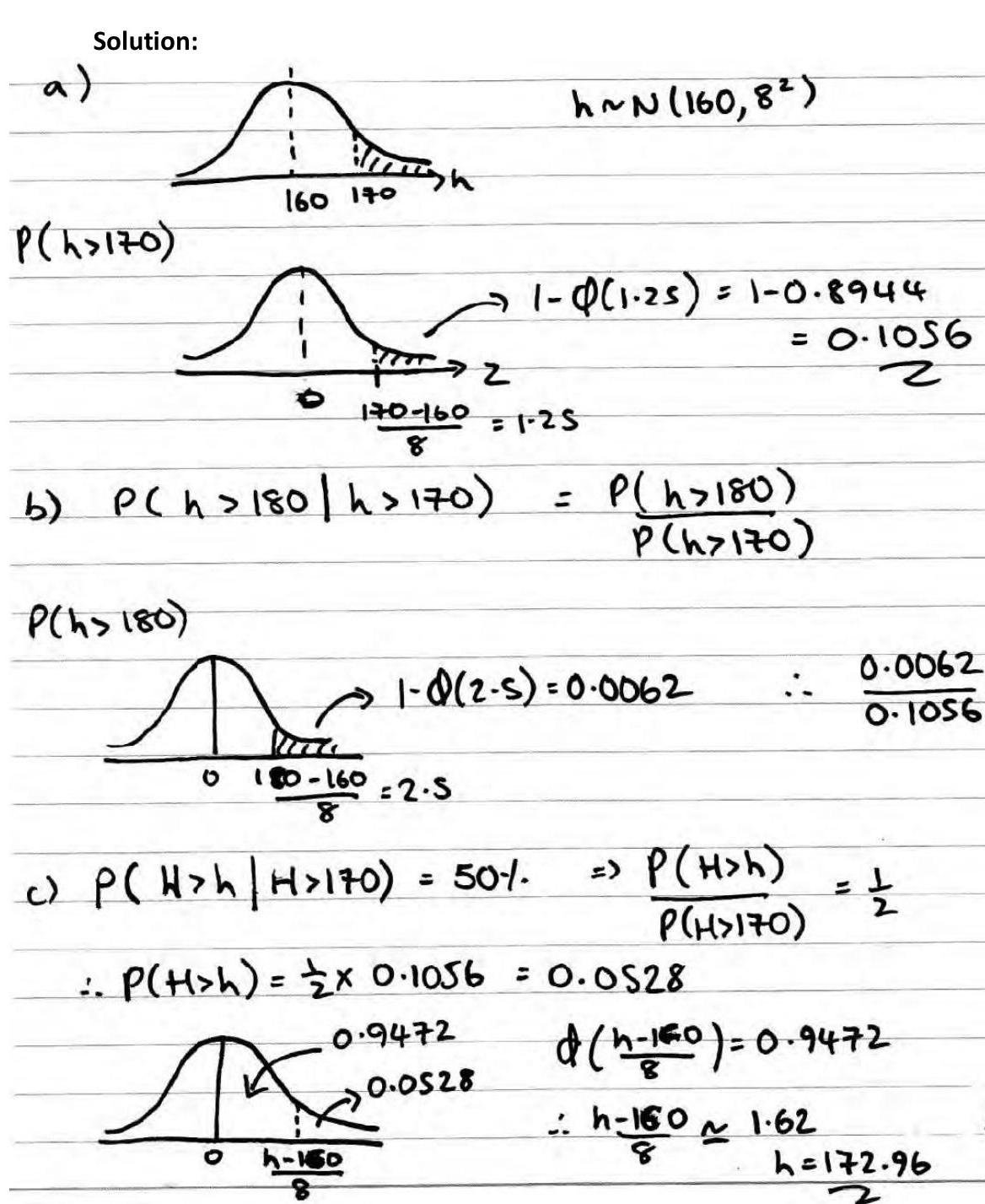 c) Half of the tall adult females have a height greater than h cm. Find the value of h.