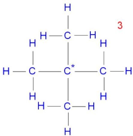 Isomer 3 is 2,2-dimethylpropane, a branched chain with the central carbon* atom joined onto four other carbon atoms.