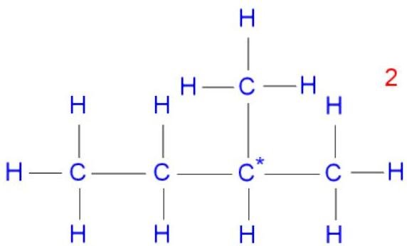 Isomer 2 is 2-methylbutane, a branched chain with a carbon* atom joined onto three other carbon atoms.