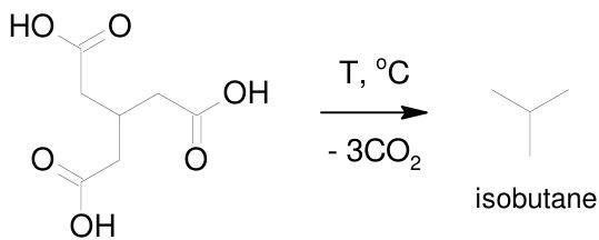 Seven acids can be taken to obtain isobutane by decarboxylation. Two of them are monobasic:
