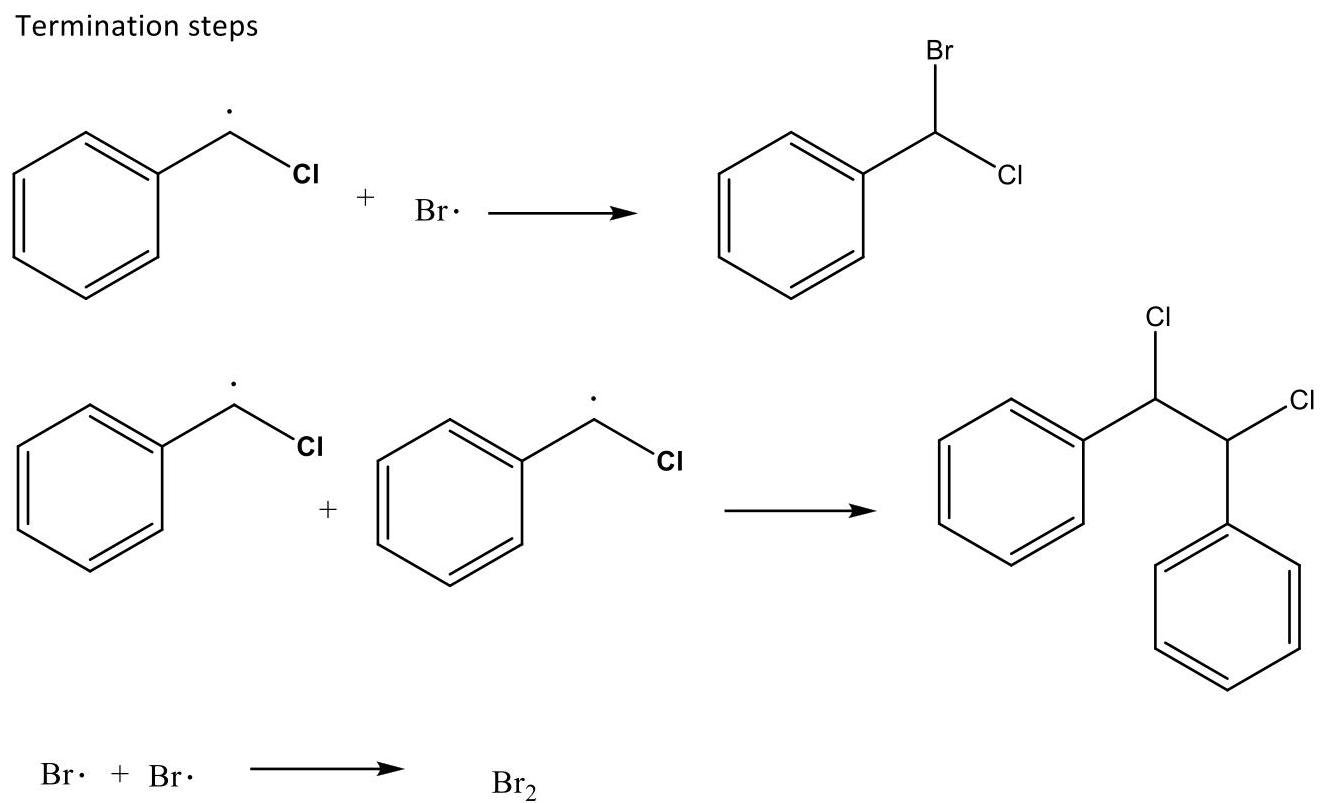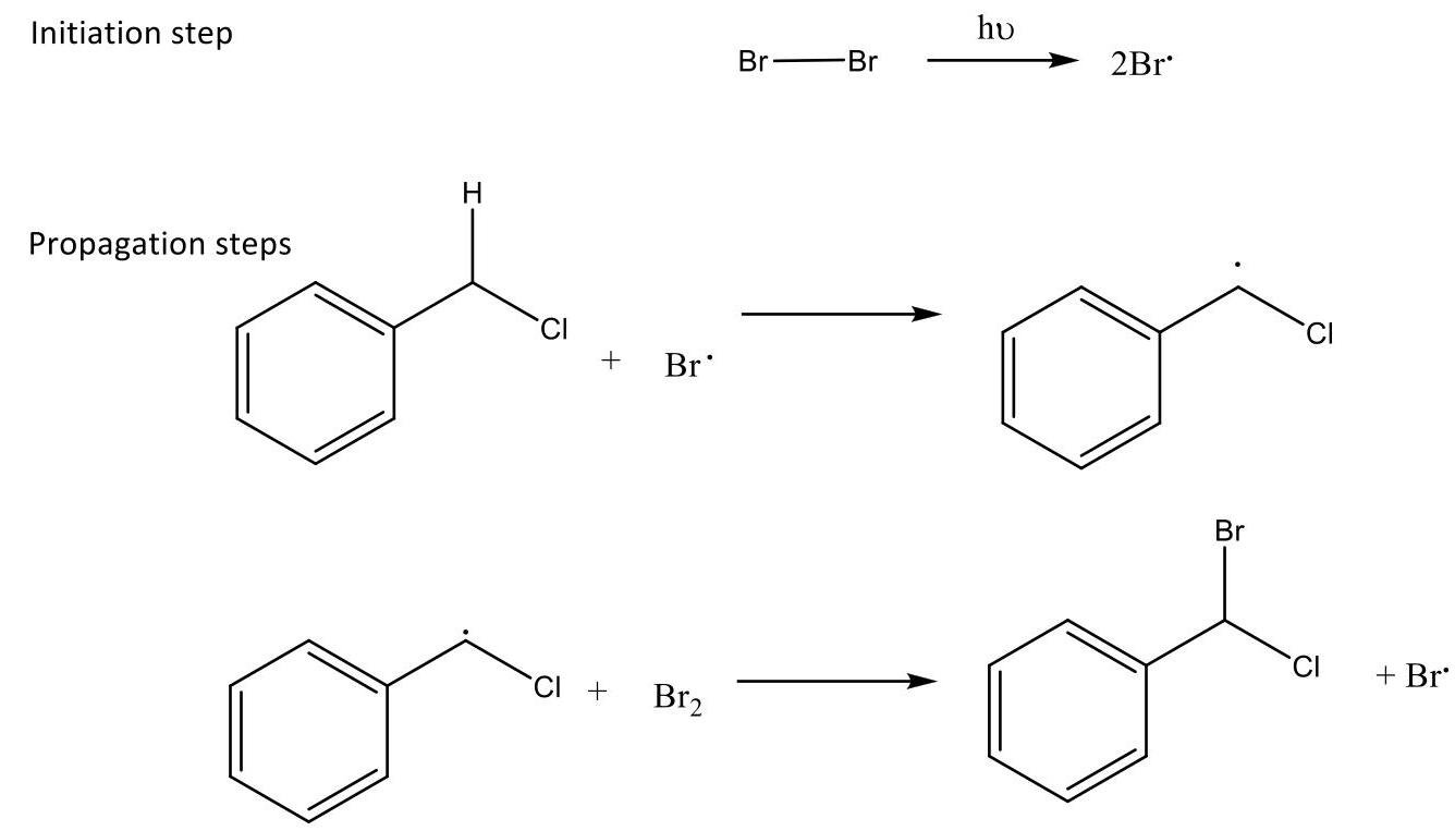 Question: Give the mechanism of the bromination of C6H5CH2Cl in the presence of sunlight.