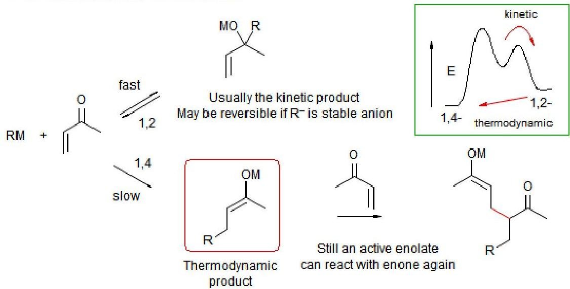 iii) Two process should occur when nucleophile attac a,b-unsaturated aldehyde – 1,2- and 1,4-addition. 1,4 addition is preferable when double bound is clear on electrons – when electron withdrawing group present with carbon – carbon double bond.