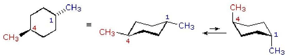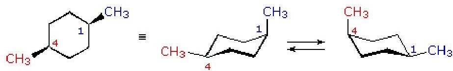 (i). Draw a chair conformation for the cis- and trans-isomers of 1,4-dimethylcyclohexane.