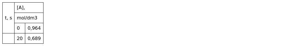 [A] / mol dm-3 0.964 0.689 0.492 0.352 0.251