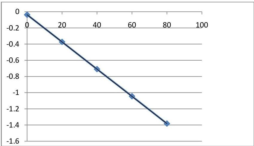 This equation has the form of the algebraic equation for a straight line, , with and , a plot of versus for a first-order reaction should give a straight line with a slope of and an intercept of . We can see that the graph drawn is a straight line, consequently, we have a first order reaction.