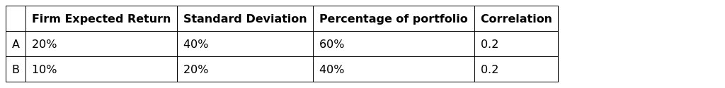 Firm Expected Return Standard Deviation Percentage of portfolio Correlation