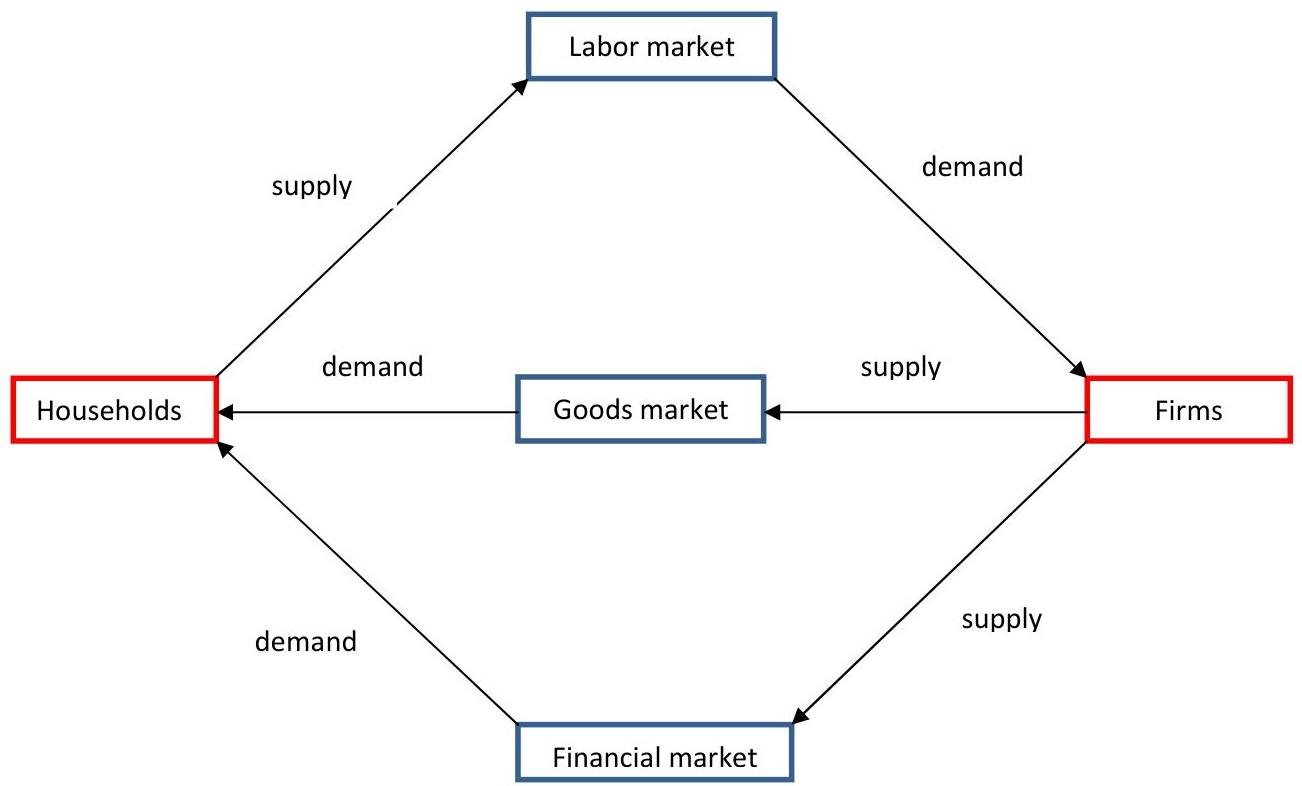 28. Identify each of the following as involving either demand or supply. Draw a circular flow diagram and label the flows A through F. (Some choices can be on both sides of the goods market).