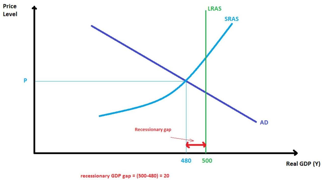 Suppose an economy is in an initial equilibrium in terms of AD and SRAS with and at some level. Suppose further that the economy's full employment level of GDP, as given by the LRAS curve, is at .