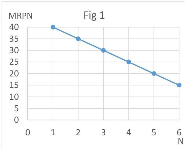 With a nominal wage set at $38, a firm must hire five employees. At the same time, MRPN (40 US dollars) is more than W ($38) with the number of employees - 5 people. The firm should not hire 6 employees, because the MRPN ($30) is less than W ($38) with the number of employees - 5 people.