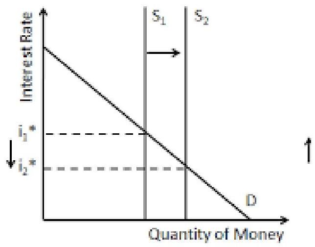E. (I) Increase in money supply causes equilibrium rate of interest to fall as shown in figure below.