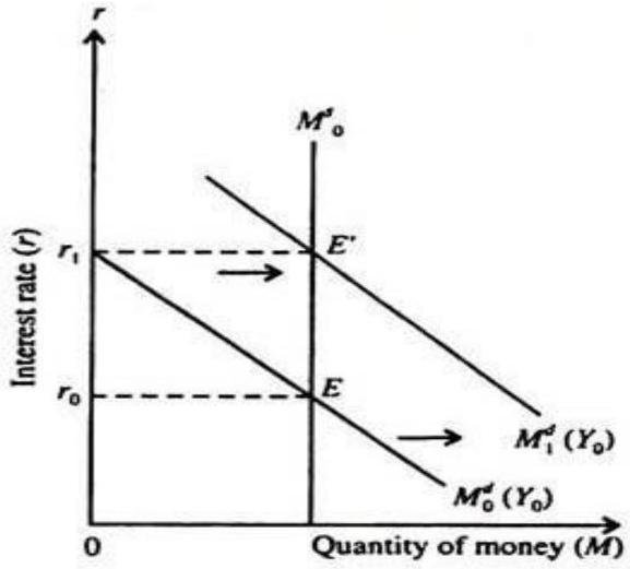 E (ii) Given the money supply an increase in demand for money will cause a rise in equilibrium rate of interest as shown in figure below.