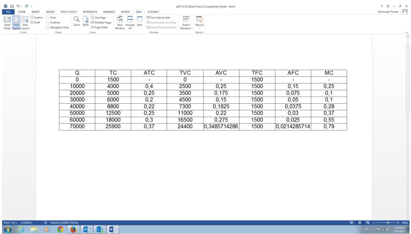 AVC = TVC/Q (firm's variable cost per unit of output)