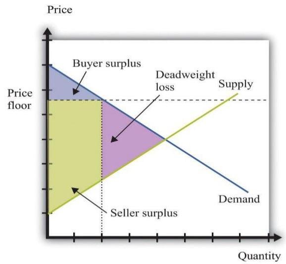 (c) As we can see on the graph below price floor decreases consumer surplus, increases producer surplus and creates deadweight loss, because an excess supply appears after the increase of price.