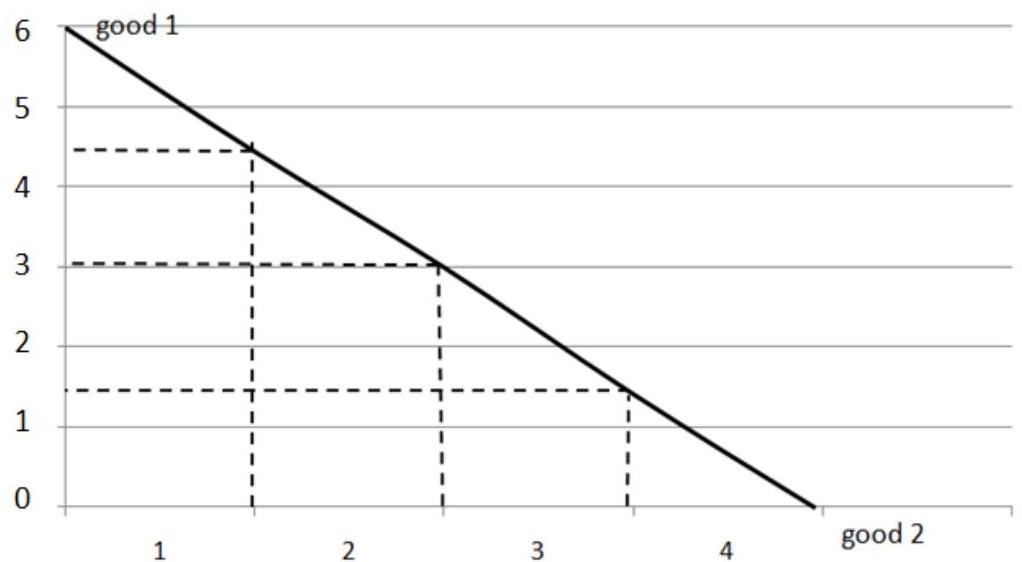 - 1 unit (if we buy 4,5 units of good 1)