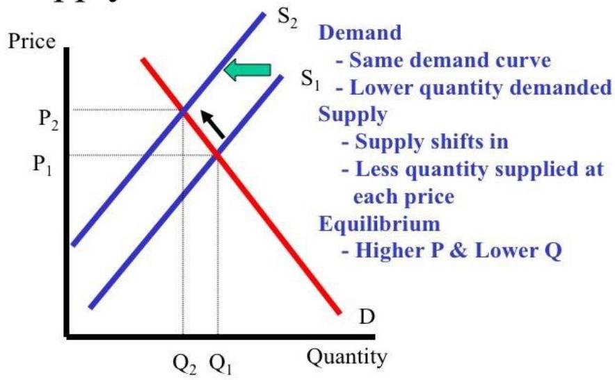 If U.S. Government price supports for milk led to an unceasing surplus of milk and in an effort to reduce the surplus about a decade ago, Congress offered to pay dairy farmers to slaughter cows, then in the milk market the supply will decrease, the surplus will disappear and the equilibrium price will increase.