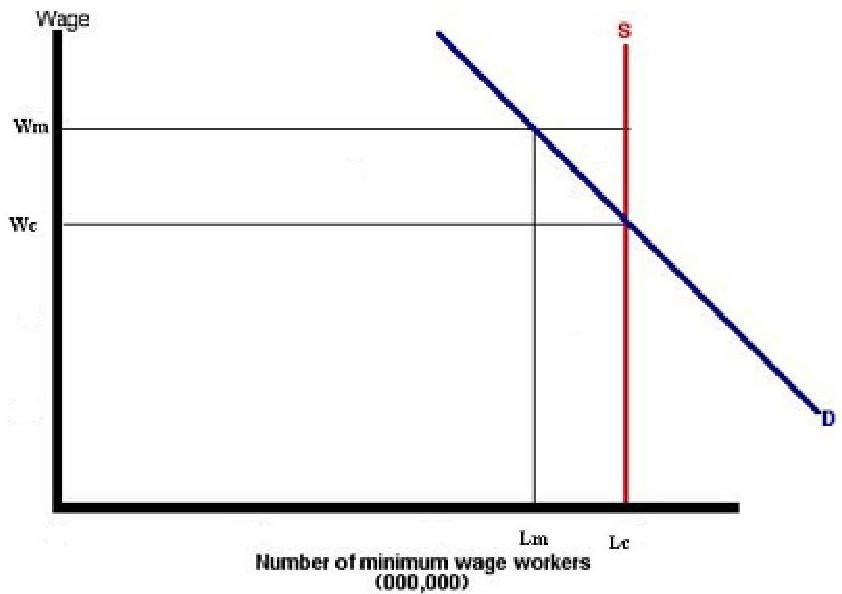 The bargaining power of union means that the minimum wage will be increased from Wc to Wm but the level of employment will be decreased from Lc to Lm as we show on the graph under.