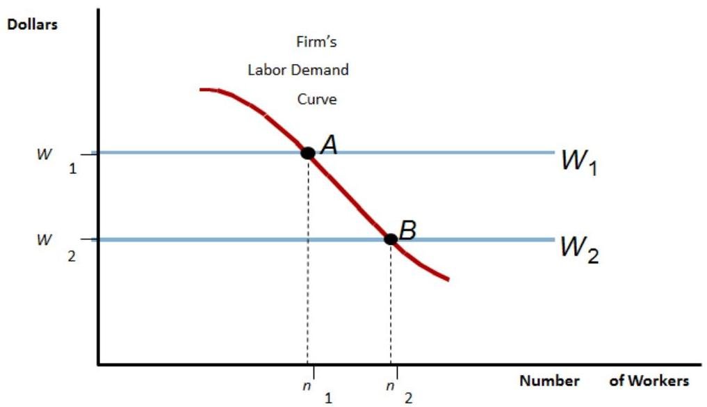 c) Graphically derive the long run demand curve in a competitive factor market and explain the underlying theory (assuming wages decrease).