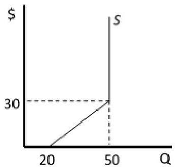 When the capacity of the theatre has been reached at 50 tickets, the supply curve becomes vertical, increases in price will have no effect on the number of tickets the theatre will supply.