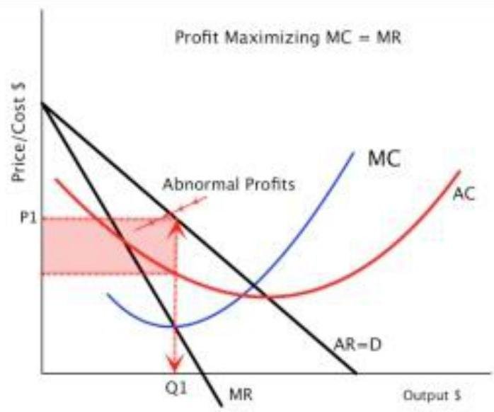 The following graph shows a firm in a monopolistic industry.