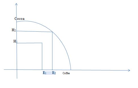 All points along the graph represent the points where the cocoa-producing countries would achieve allocative efficiency in favor of coffee.