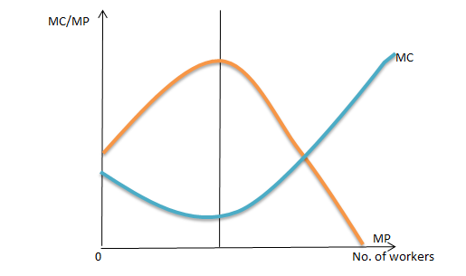 MP is the additional production of extra workers. MP and MC have inverse relationship. When MP increases, MC decrease. When MP decreases, MC increase.