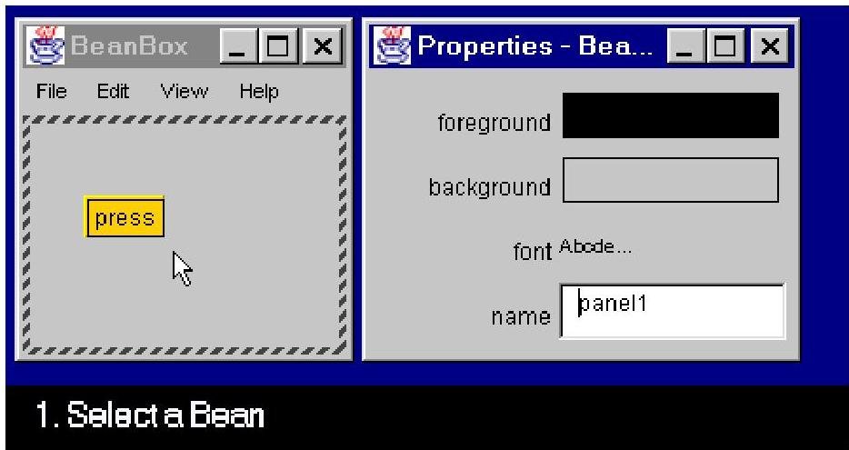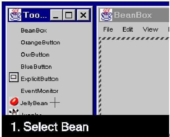 - In the middle, the BeanBox. This window contains the beans we're working on.