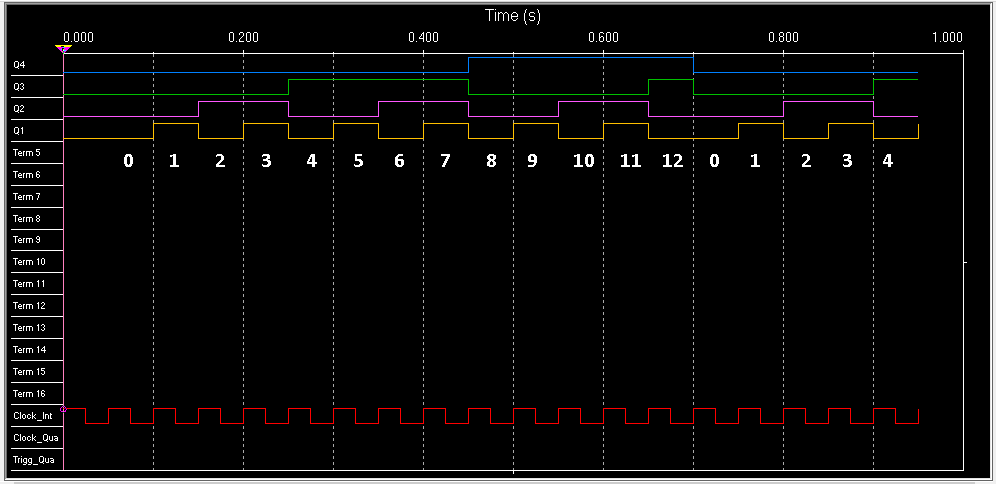 The main parameter of the counter is the counter module - the maximum number of pulses that can be counted by the counter. Thus, the counter forms a sequence of binary numbers from zero to 2n - 1, where n is the bit capacity of the counter. A modulo 13 counter needs at least 4 bits (triggers) and a reset circuit that will reset the counter outputs to zero when the maximum value (13) is reached.