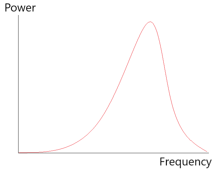 As we see, the curve that represents the power required to support a signal at a given frequency will differ from Gaussian distribution. The asymmetry is characterized by skewness, the pike is characterized by the kurtosis.