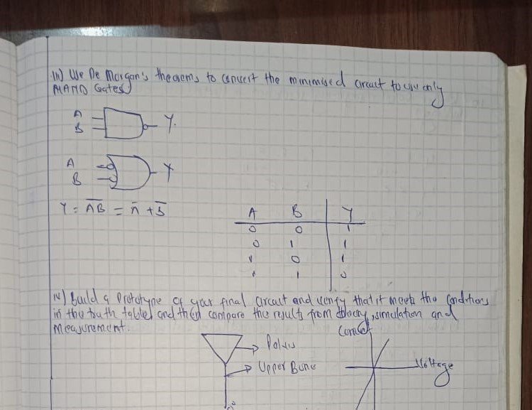 (iv) Build a prototype of your final circuit and verify that it meets the conditions in the truth table, and then compare the results from theory, simulation and measurement.