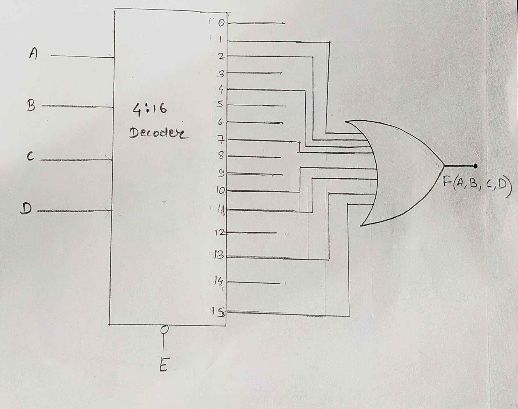 Thus, in this way, the given Boolean function is implemented with decoder and OR gate.