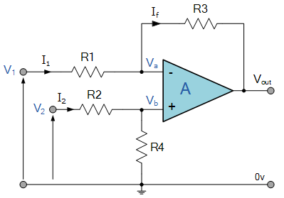 In reality, this circuit is frequently used with R1=R2 and R3=R4 to provide a balanced subtractor with gain R3/R1=R4/R3 in each input, i.e., Vout=(R3/R1)* (V2-V1).
