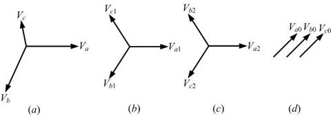 Consider an unbalanced phasor has shown in (a). The positive, negative, and zero sequence are shown in (b), (c), and (d) respectively.