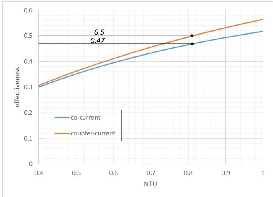 Solving equations (3) and (4) graphically (see Figure 1 on the page 2), we obtain the following value of the co-current heat exchanger: