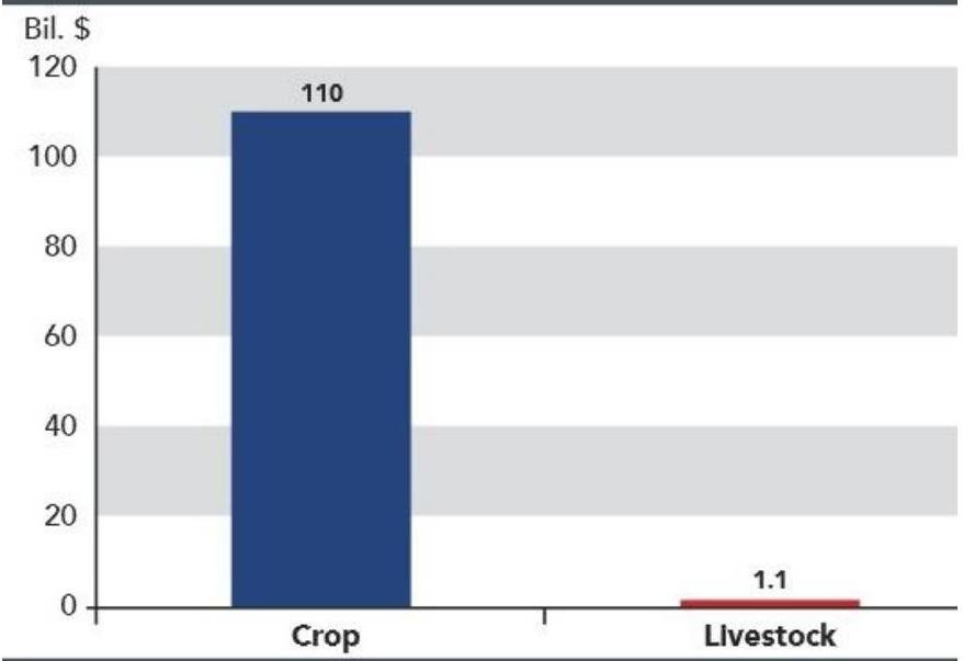 The Federal government provides crop and limited peril livestock insurance for farmers and ranchers. Livestock insurance protects only against price or margin (the difference between livestock price and feed costs) losses and whole farm revenue losses. Federally supported livestock insurance is managed by the Federal Crop Insurance Corporation (FCIC) and USDA's Risk Management Agency (RMA) as part of the Federal crop insurance program. The statistical information can be reviewed in the following Figure.