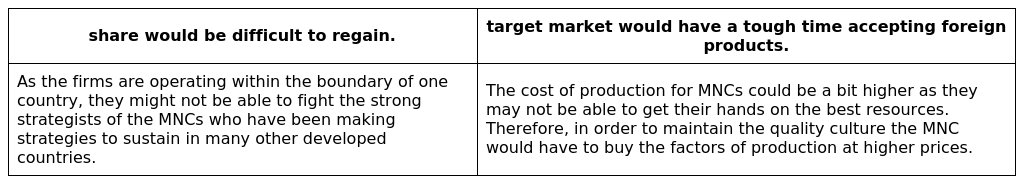 The Disadvantages are explained in the table below.