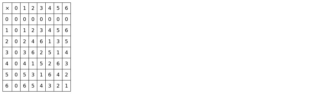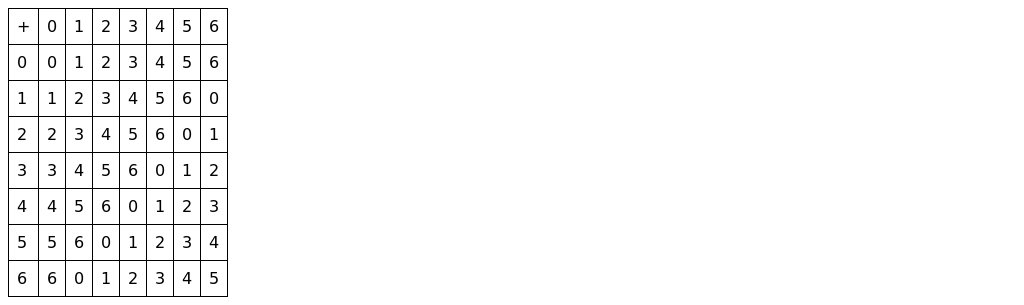 Question. Write the Cayley tables for addition and multiplication in Z7\mathbb{Z}_7Z7 .