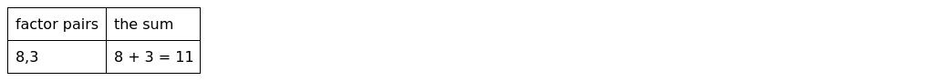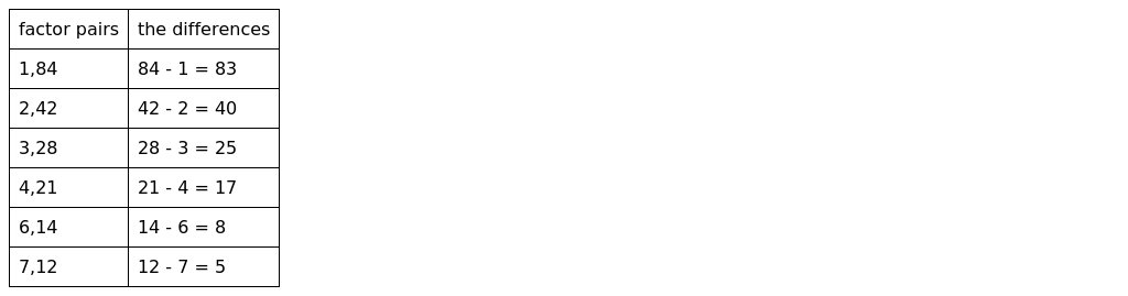 We can subtract the pairs to find the differences. If there is a pair of factors with a difference of 5, then we can factor the quadratic. Now that we have factor pair (with the larger number having the "minus" sign), factor the quadratic: