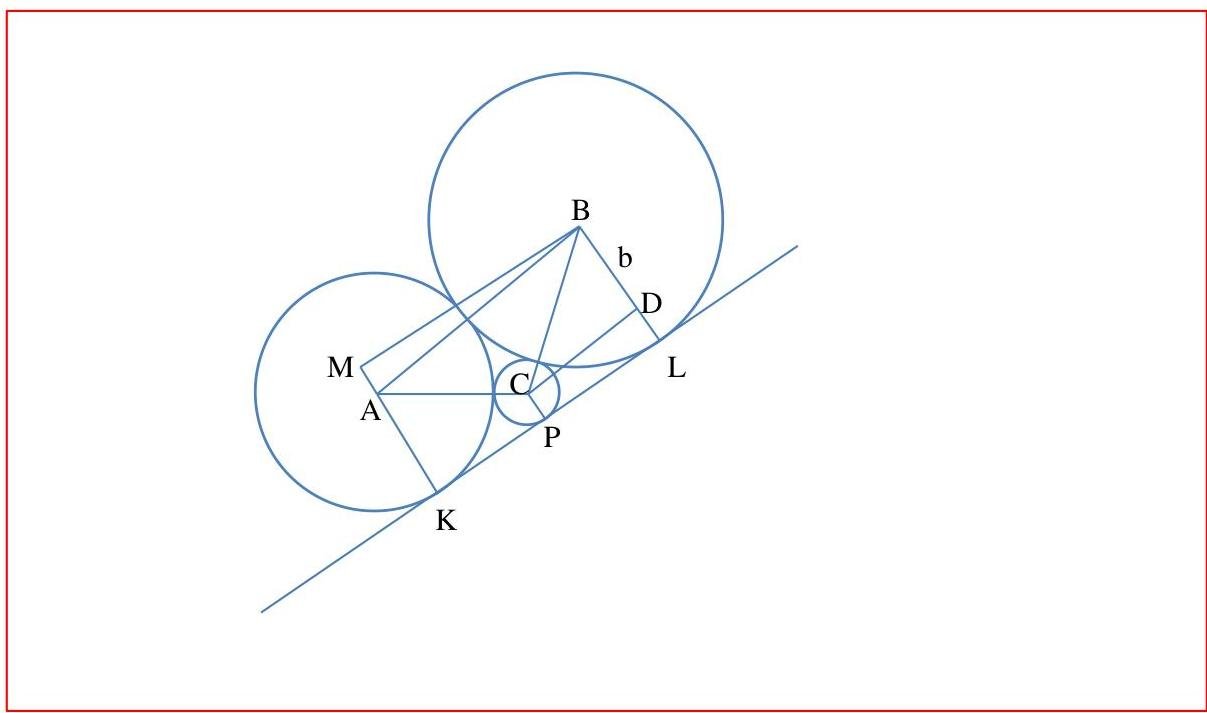 two circles with radii a and b respectively touch each other externally and a smaller circle with radius c touch both the circles and also the common tanjent to the two circles,then prove that: