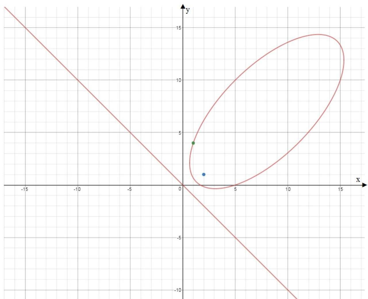 Find the equation of the conic of which one focus lies at (2,1) one directrix is x+y=0 and it passes through (1,4). Also identify the conic and reduce the conic you obtained above to standard form. Draw a rough sketch of the conic obtained above.