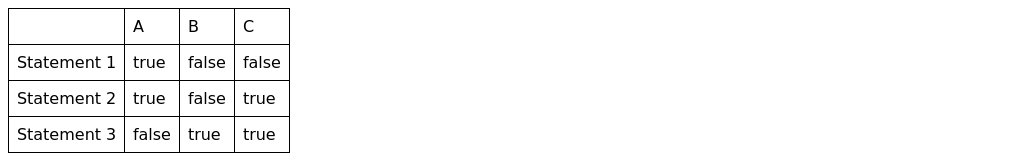 Answer: The ring could be in the box B if only one statement is true.