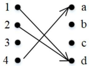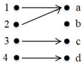 4) f(a)=f(c)=0,f(b)=1 not one-to-one (for different a,c∈A, f(a)=f(c)), onto (because for all y∈B there exists such x∈A that f(x)=y);