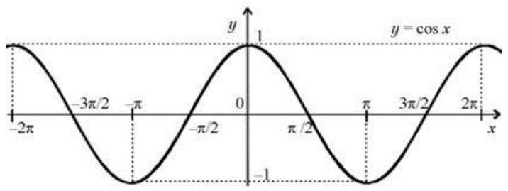 To find this definite integral, we must know subsets of [ − 2 π ; π ] [-2\pi; \pi] [ − 2 π ; π ] , where function cos x \cos x cos x is negative and positive. We can see it on a picture below: