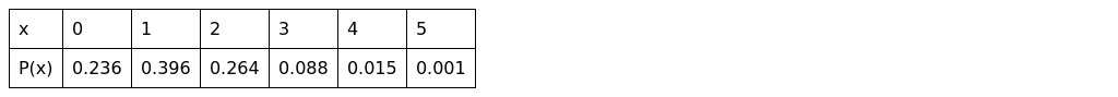 For the following listed, the x value is first, the px is second... 0, .236, 1, .396, 2, .264, 3, .088, 4, .015, 5, .001. Need to find the mean, expected number, and standard deviation.