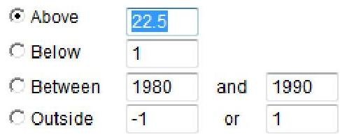 Outside -1 or 1