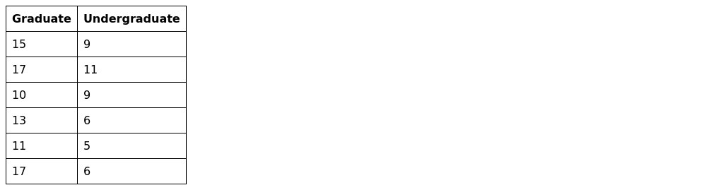 1. An LU professor is interested in whether there is a difference between undergraduate students and graduate students in the amount of time spent praying each day. The professor gathers information from random samples of undergraduate and graduate students on the LU campus. The amount of time praying is normally distributed and is measured on an interval/ratio scale.