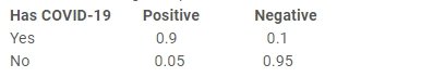 if the tested person has COVID-19, there is a 0.90 probability that the